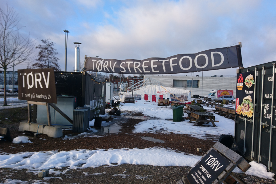 Орхус Доклендс 13 января 2024 — на острове стояли контейнеры, в которых и зародился морской музей Орхуса. Дальнейшая судьба музея остается всё ещё туманной.
